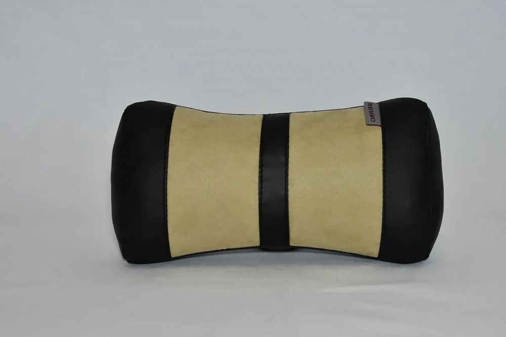 Подушка под шею в автомобиль CHEHLER Бежево-чёрная (Алькантара)